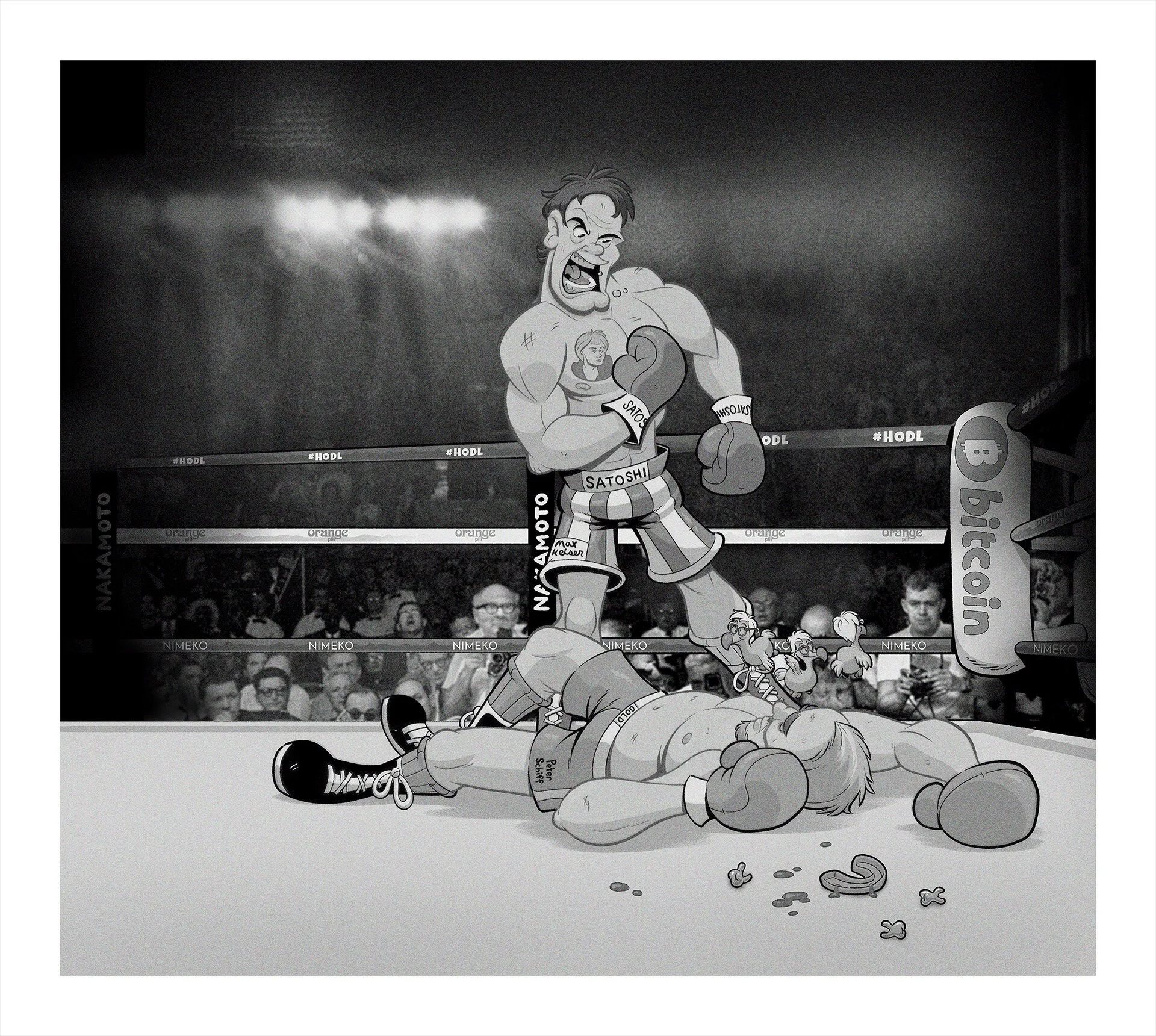 "Let's Get Ready To HODL Baby" Vintage Edition. From The Bitcoin Boxing Digital Feature Series (DFS) 2021. Created by Athanasi Glekas.